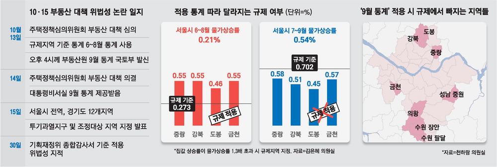 국토부 '9월 집값 통계' 적용시 강북᛫의왕 등 기준 미충족지역 김 "소송지면 풀것" 국회 답변, 주민들 "시간끌기 하는 거냐" 강북 거래, 규제전 대비 절반 도봉 평균 매매가 7천 넘게 '뚝'
