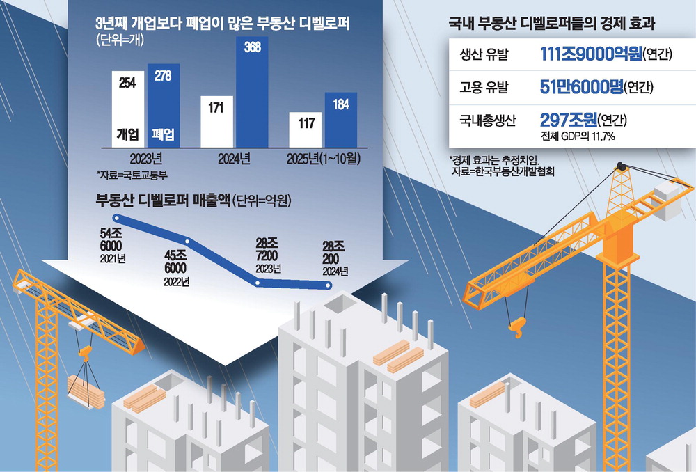 대형사도 회계 '의견거절' 속출 부채비율 3000% 넘는 곳까지, 3년새 디벨로퍼 매출액 반토막 부동산 개발 생태계 붕괴 우려, 도시개발᛫주택공급 중요한 축 한해 생산유발 효과만 112조원, PF의존한 사업방식 손질 필요 정부도 인허가 지원 속도내야