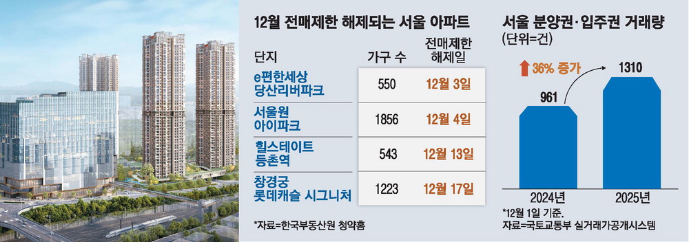 이달 전매제한 해제되는 신축 노원 아이파크에 3억 '웃돈' 양도세도 내주는 '손피' 성행, 규제에 서울 신축매물 씨 말라 분양권᛫입주권 거래 36%↑