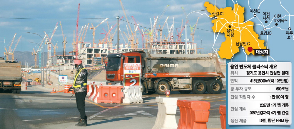 SK하이닉스 '용인 클러스터' 현장 가보니, 4개 팹᛫소부장 기업 50여 곳 주거시설᛫에너지 센터도 입주 매일 1만명 투입 '메가팹' 구축, 2027년 5월 1기 팹 가동 목표 AI 특화 HBM᛫D램᛫낸드 등 공급자 넘어 AI 공동설계 구상