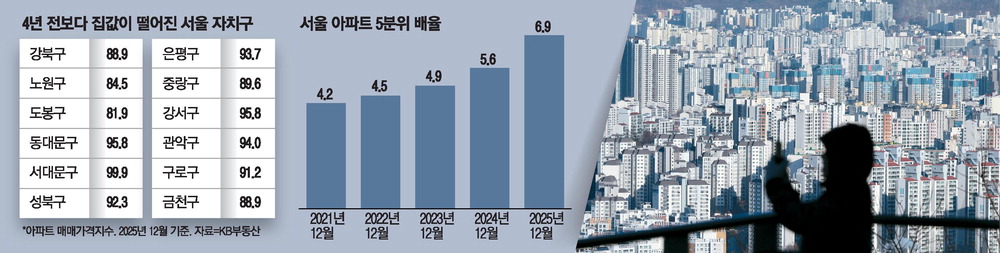 5. 서울 집값 양극화 ... 절반이 문정부때 못 미쳐