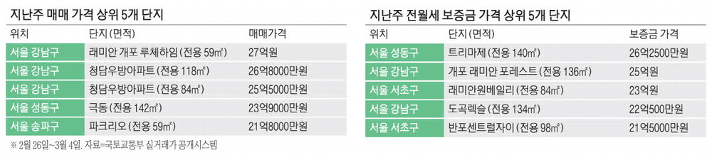 2. 강남᛫용산 하락전환 영향 ... 한주간 최고 매매가 30억 밑돌아